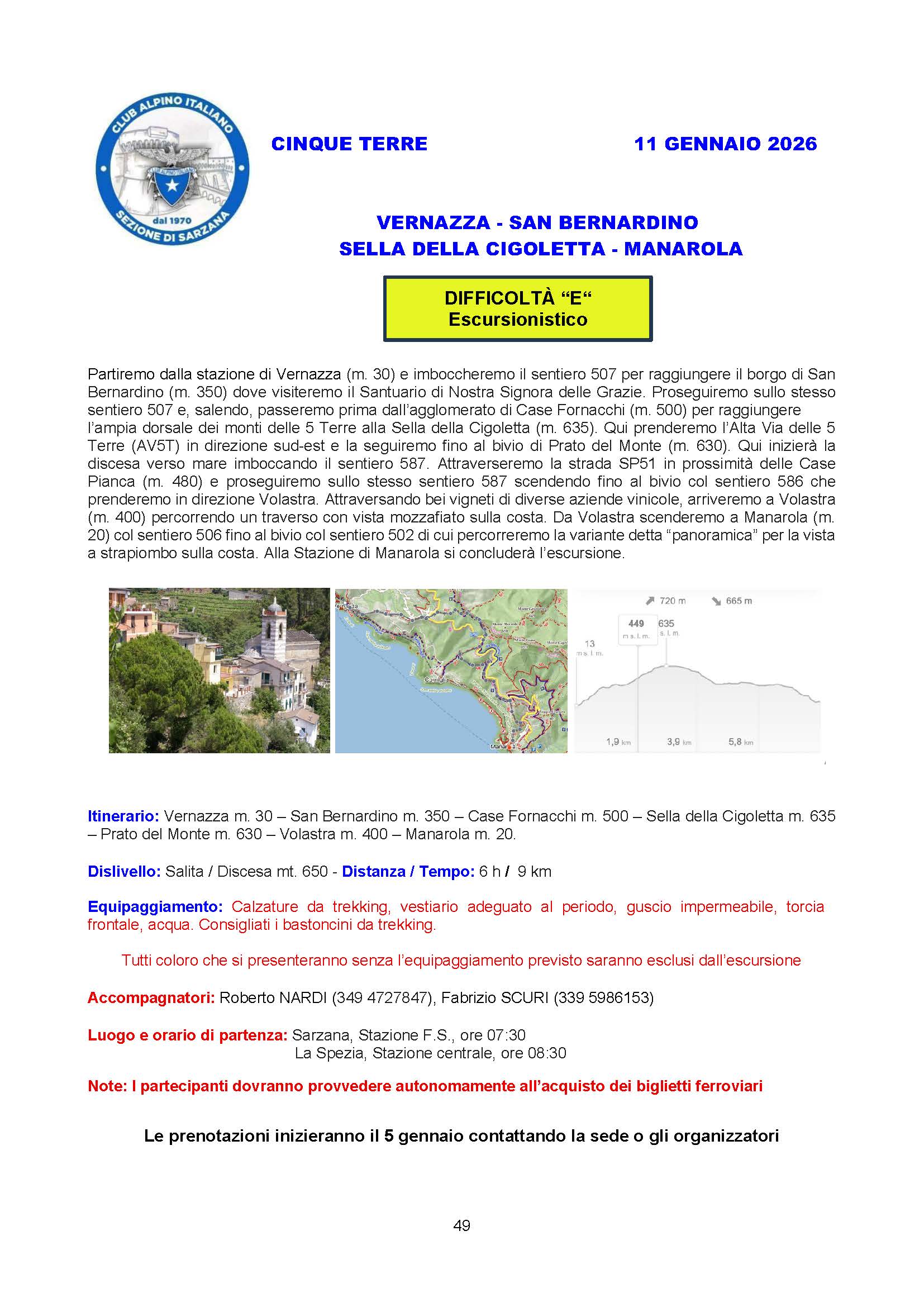 CINQUE TERRE – VERNAZZA – SAN BERNARDINO – SELLA DELLA CIGOLETTA – MANAROLA
