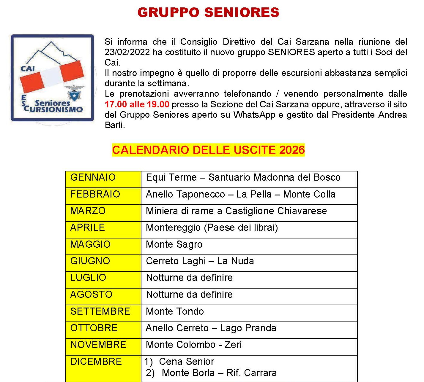 In osservanza del Regolamento il Gruppo Senior è aperto a tutti i Soci iscritti al CAI in regola con la quota sociale dell’anno corrente e che abbiano compiuto 55 anni di età.